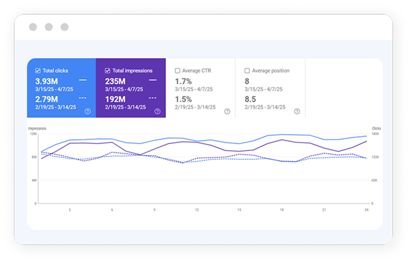 We’ll research the keywords you’re currently ranking for, keywords your competitors rank for, and new high-value keyword opportunities based on your niche and target audience to craft a strategy designed to maximize your visibility in the search results.